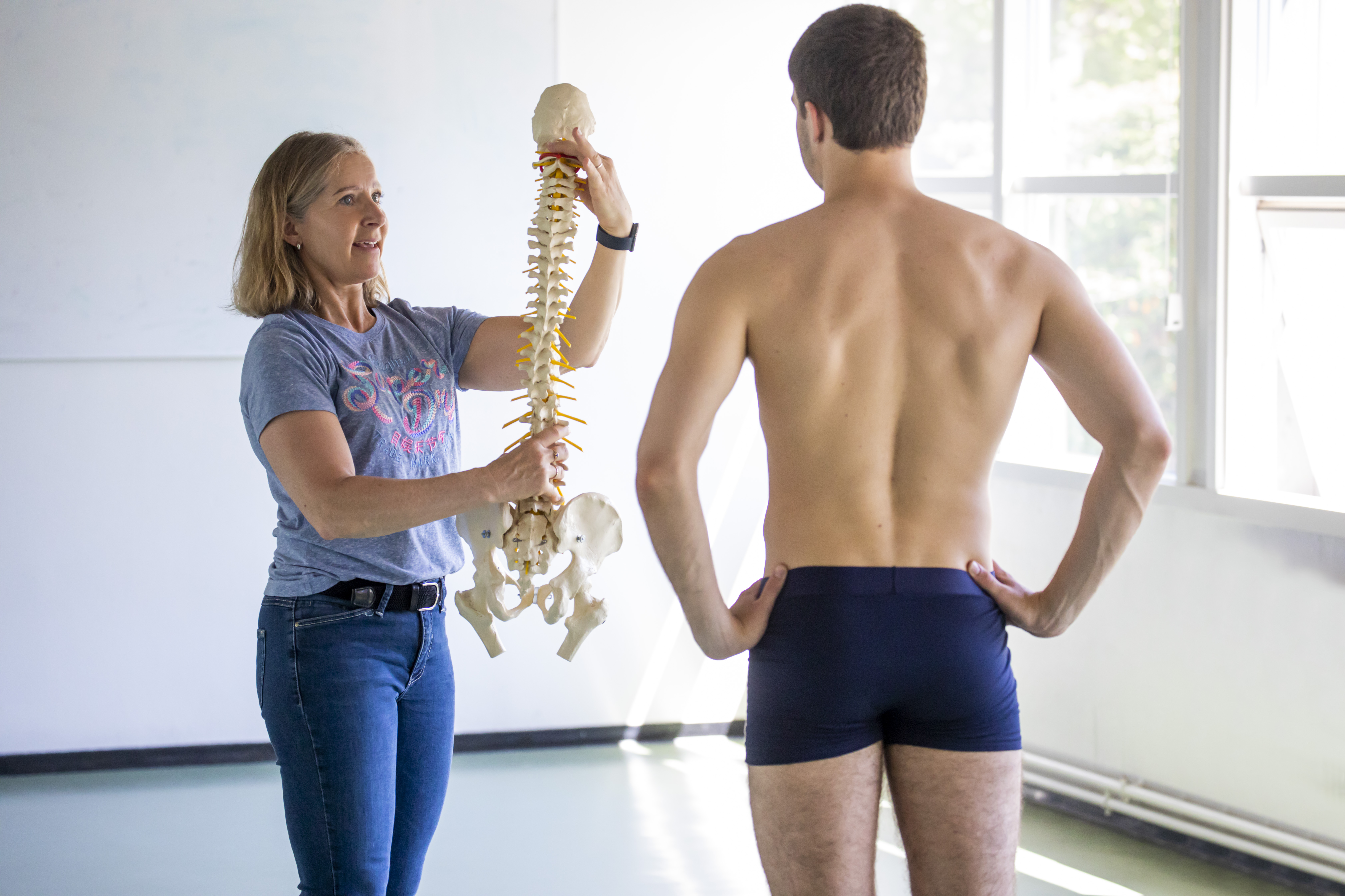 Undervisningen er en vekselvirkning mellem teori om kroppens led, muskler, balance og praktiske øvelser.